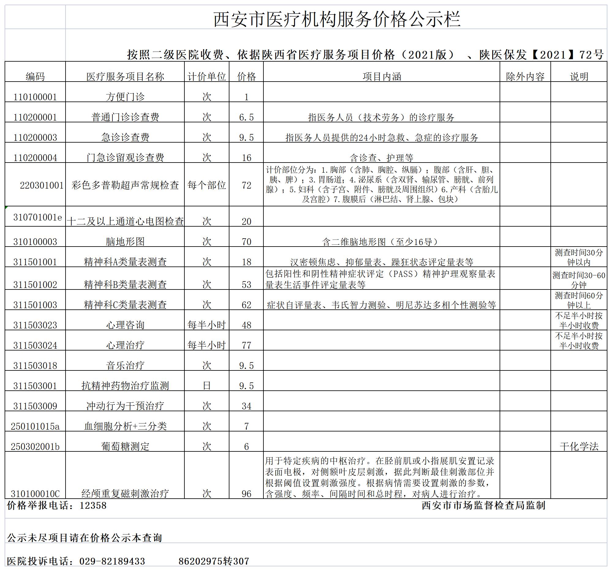 陕西省医疗服务项目价格